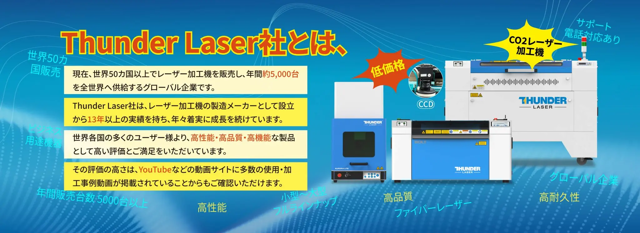 コンパクトでもパワフル!Thunder Bolt CO2レーザー加工機は、限られたスペースでもレーザー加工の可能性を最大化します。卓上で使える理想のレーザー加工機です。
